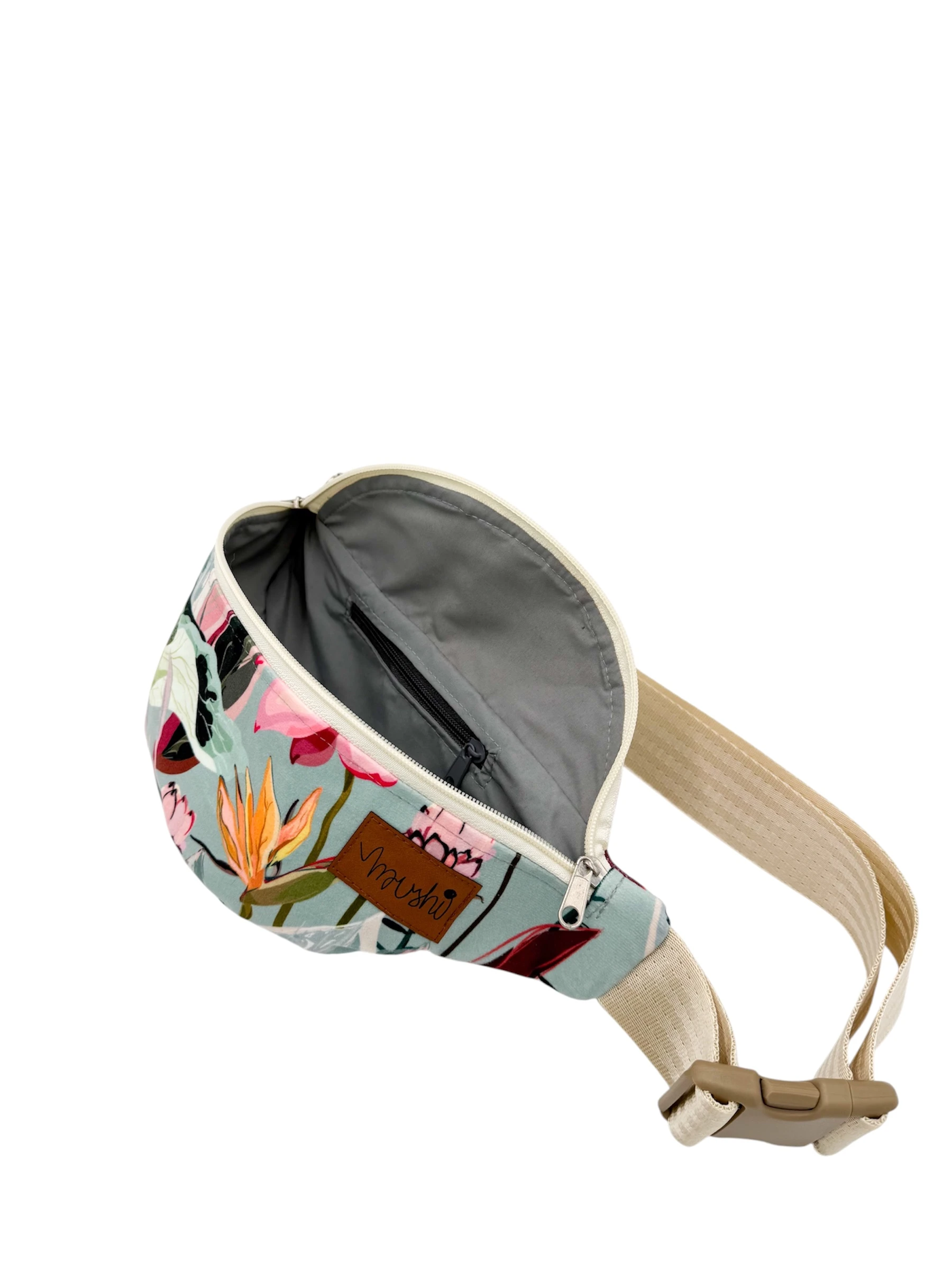 Nerka wykonany jest z mocnego, tapicerskiego weluru. W środku znajduje się wodoodporna podszewka. Saszetka wiele pomieści. W nerce znajduje się mała kieszonka wielkości kart płatniczych.