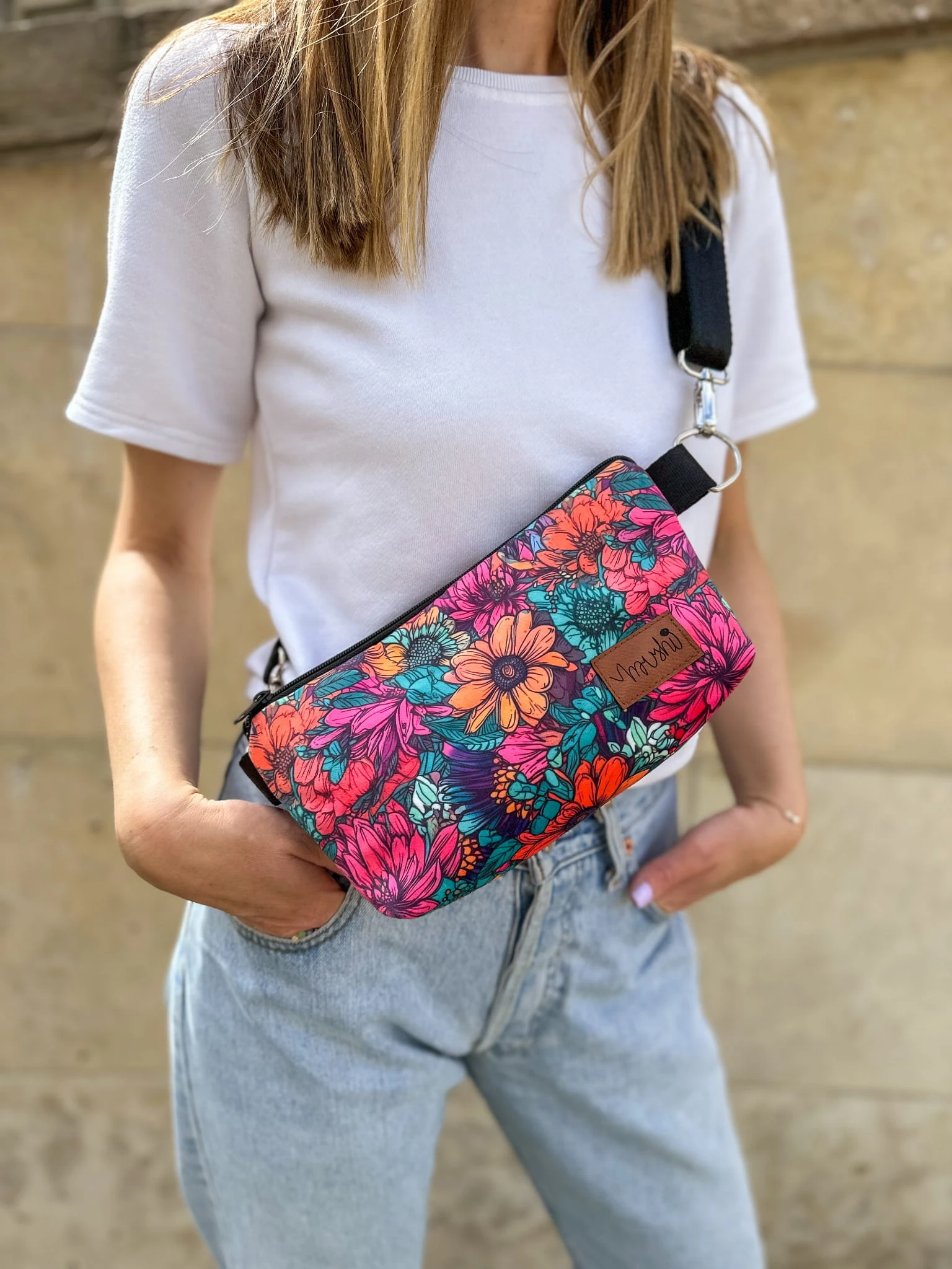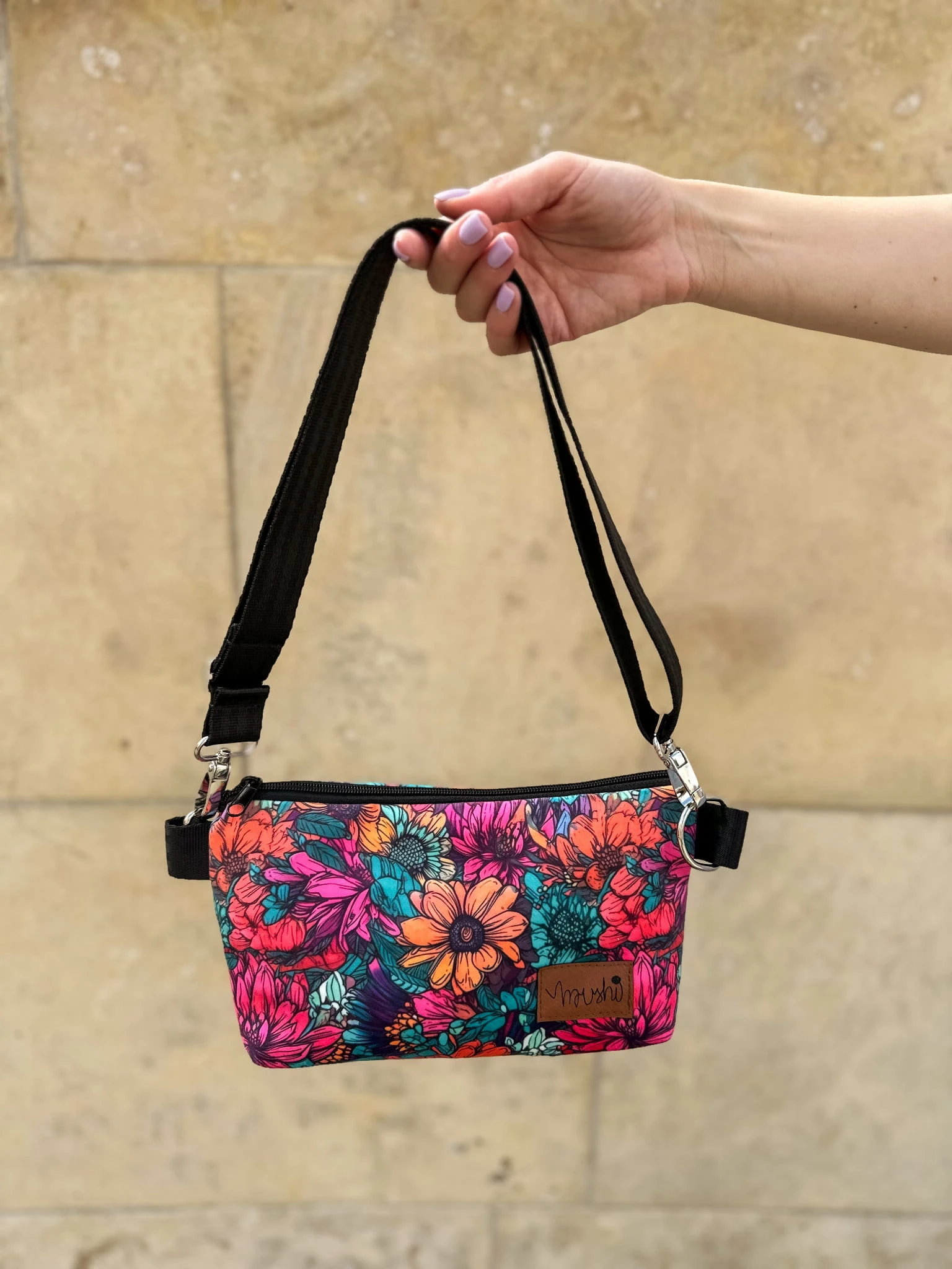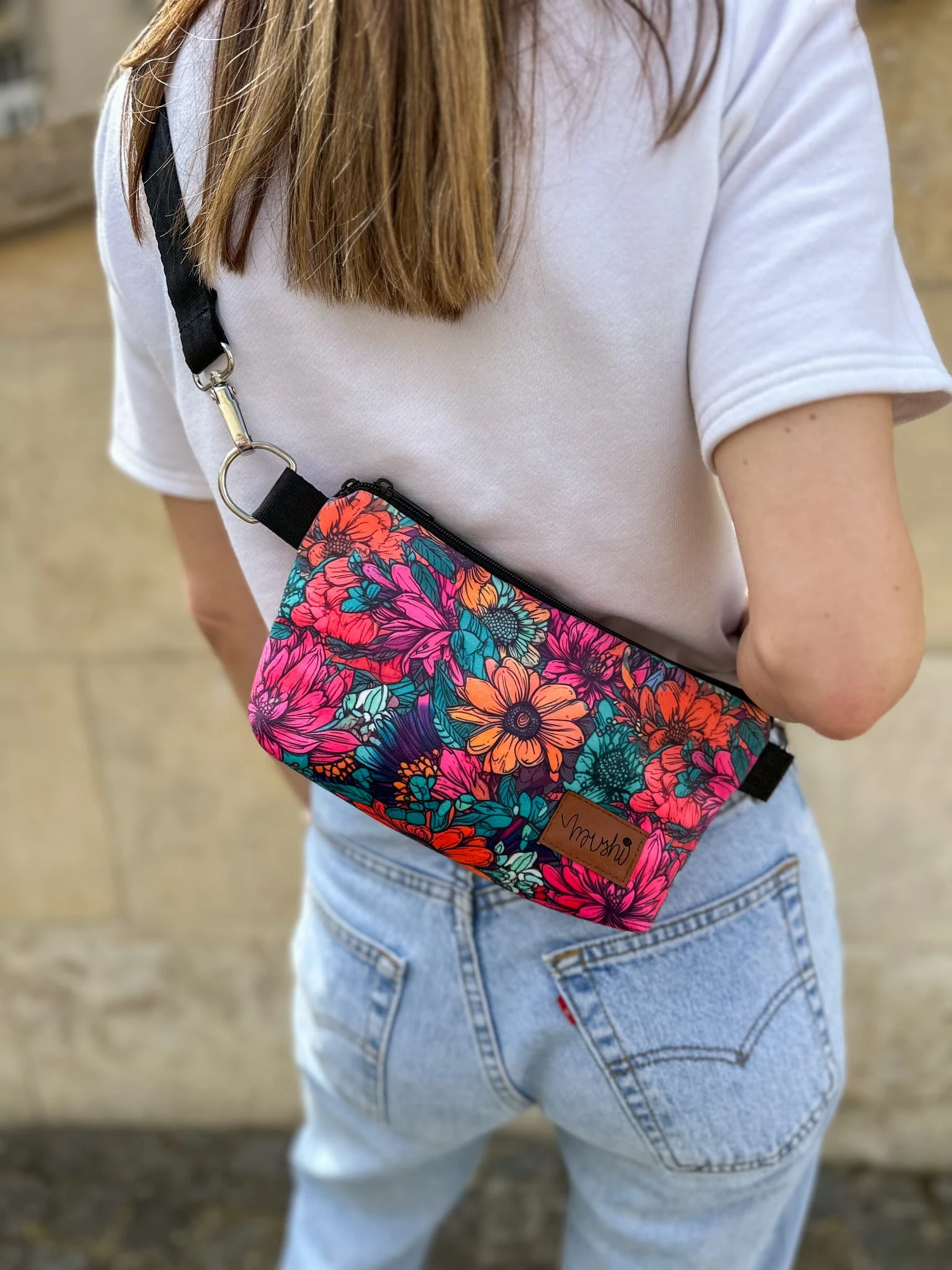 Torebka "Neonowe kwiaty" welur